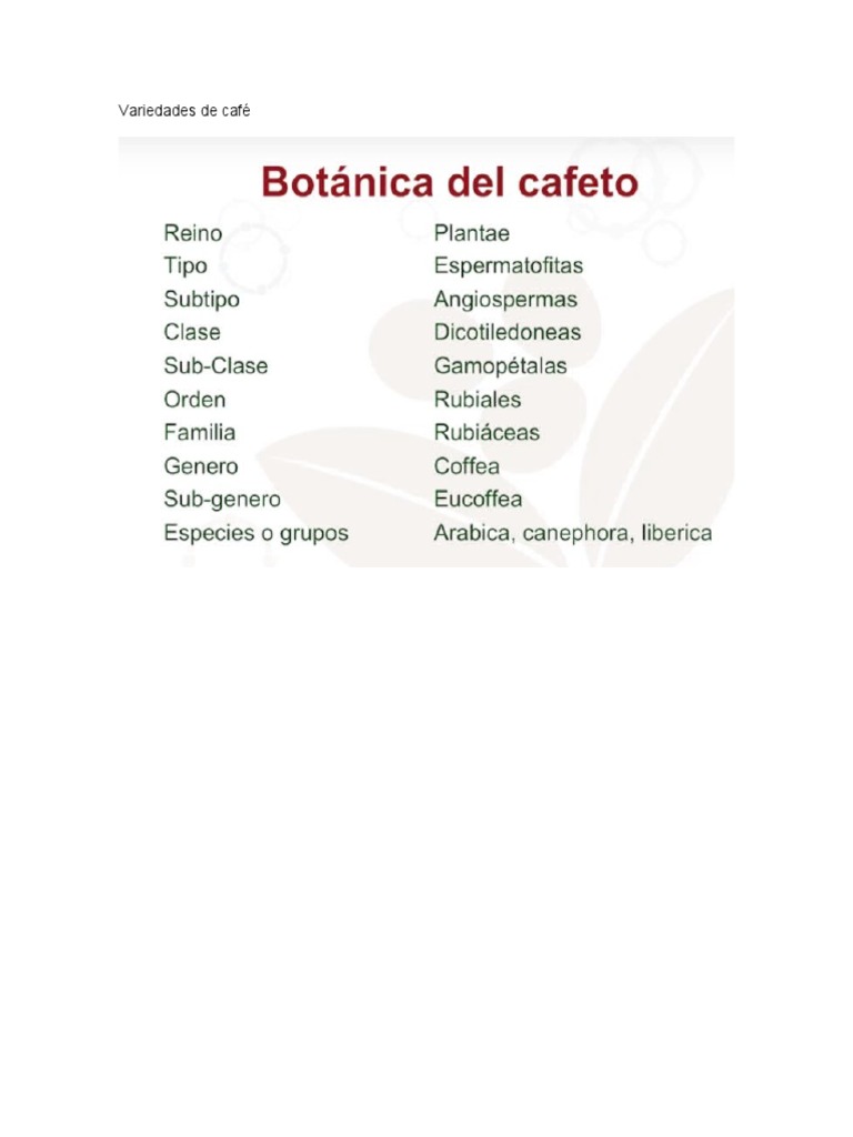 de las Rubiáceas. Cada café es peculiar por su aroma y sabor, esto dependerá del tipo de planta