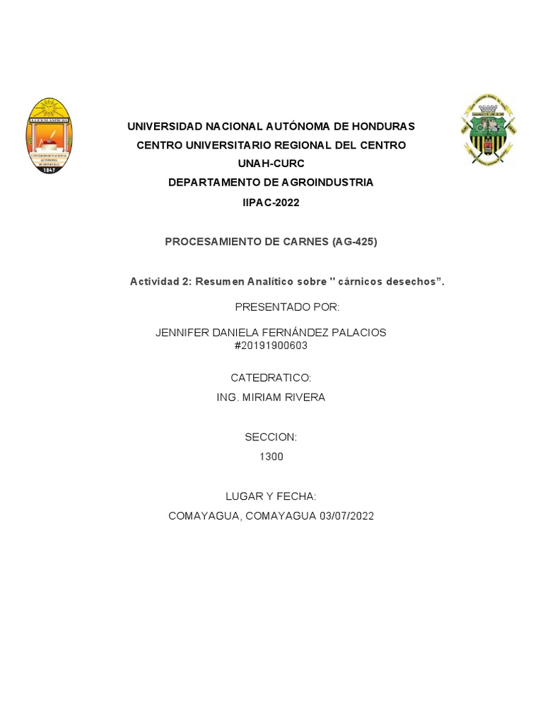 Actividad 2: Resumen Analítico sobre " cárnicos desechos”.