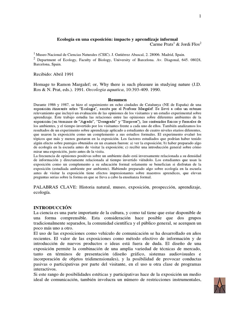 Prats and Flos 1984), como así también sobre el comportamiento y el aprendizaje