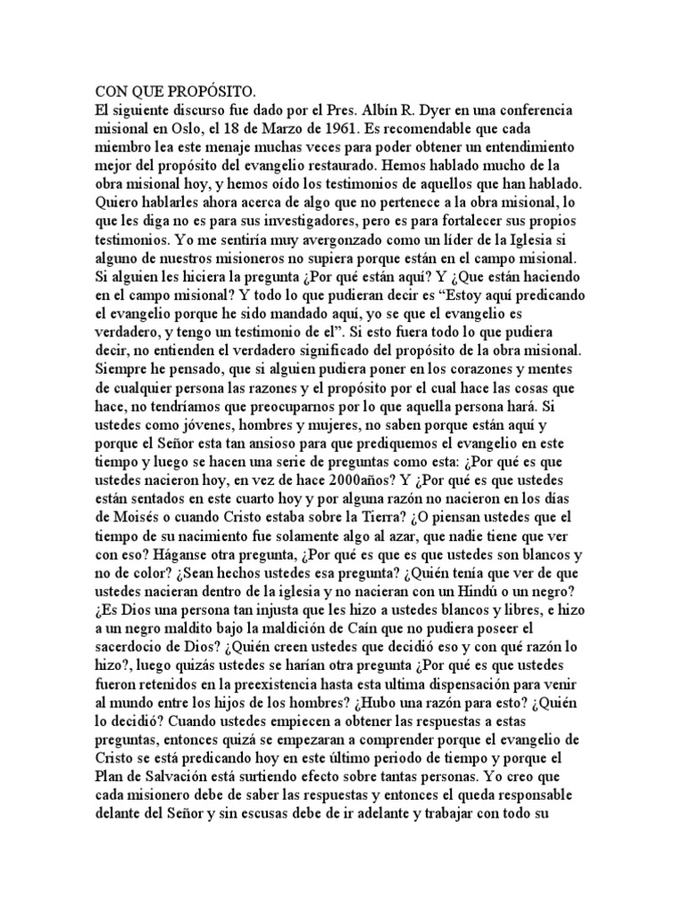 El siguiente discurso fue dado por el Pres. Albín R. Dyer en una conferencia