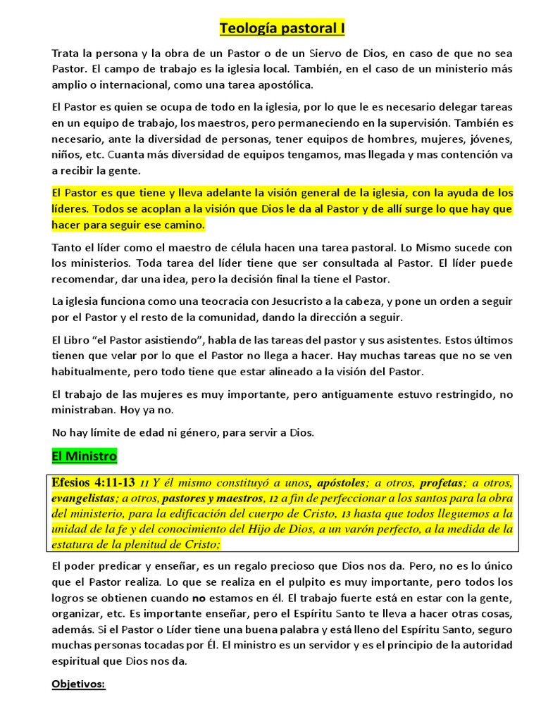 Pastor. El campo de trabajo es la iglesia local. También, en el caso de un ministerio más