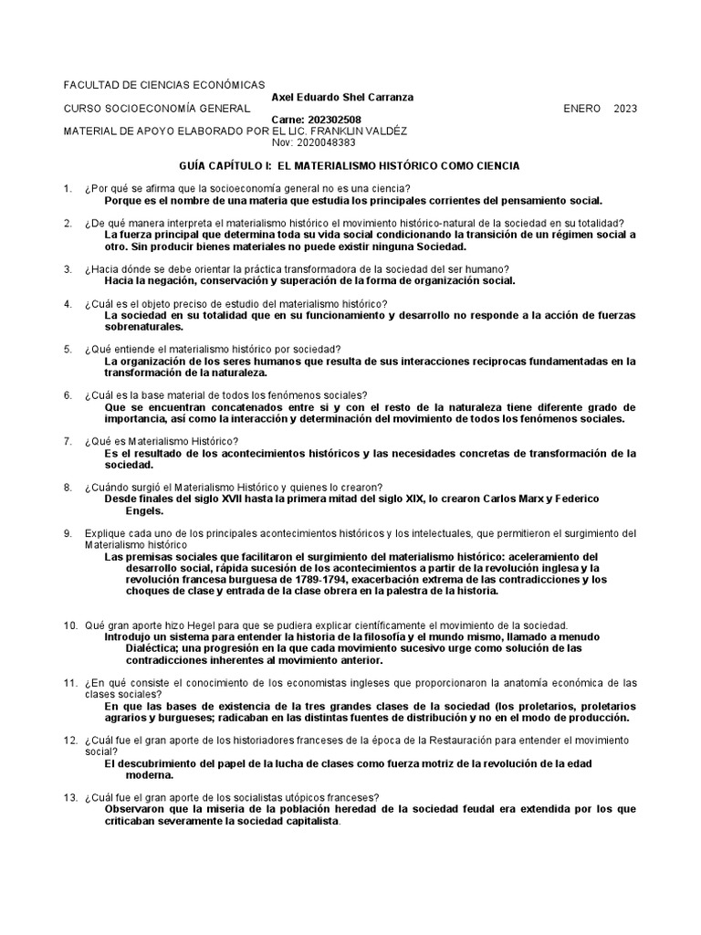 GUÍA CAPÍTULO I: EL MATERIALISMO HISTÓRICO COMO CIENCIA