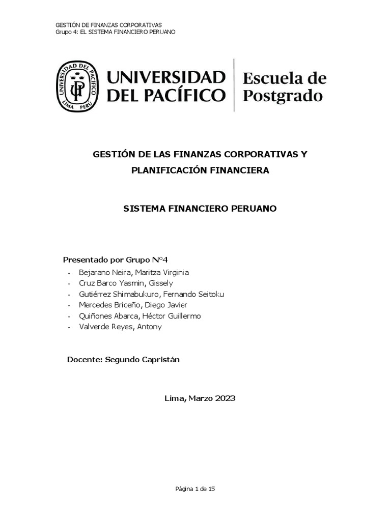 Grupo 4: EL SISTEMA FINANCIERO PERUANO