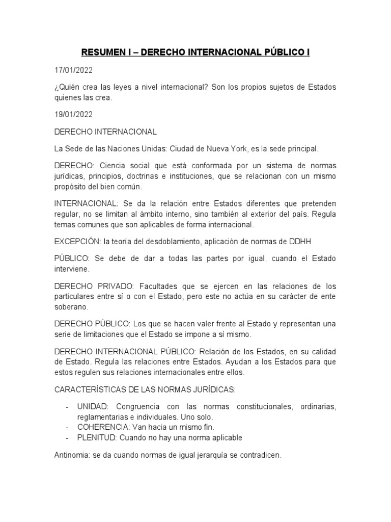 RESUMEN I – DERECHO INTERNACIONAL PÚBLICO I
