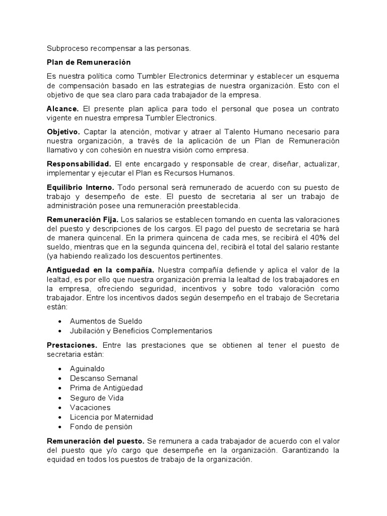 nuestra organización, a través de la aplicación de un Plan de Remuneración
