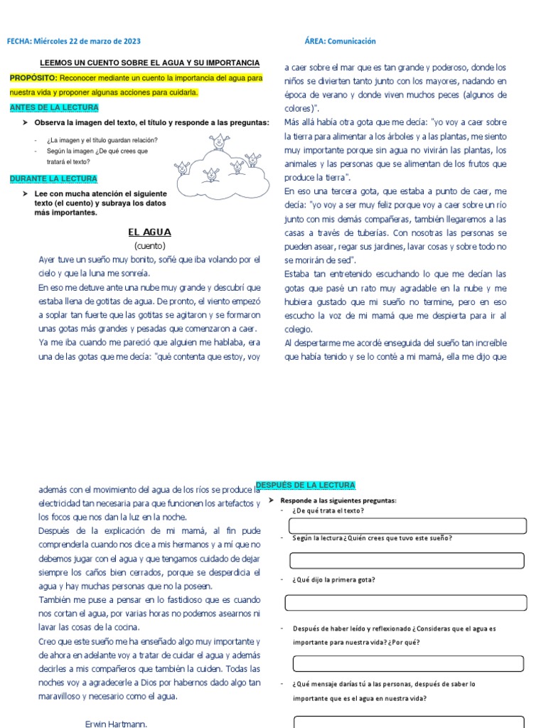 LEEMOS UN CUENTO SOBRE EL AGUA Y SU IMPORTANCIA