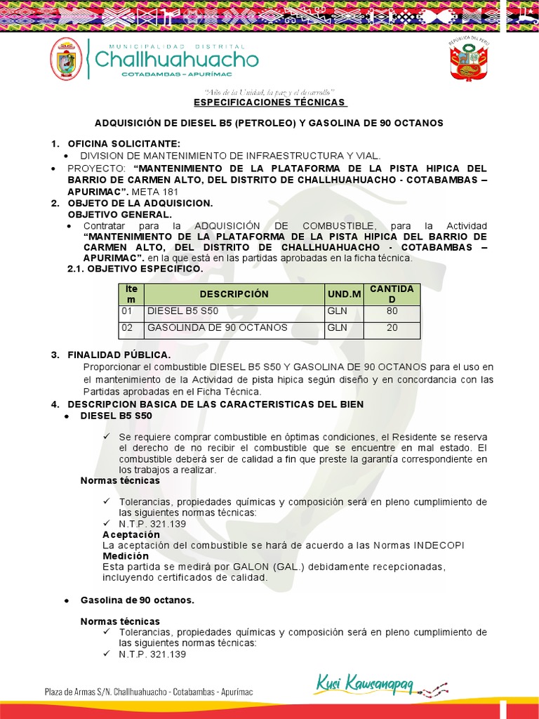 ADQUISICIÓN DE DIESEL B5 (PETROLEO) Y GASOLINA DE 90 OCTANOS