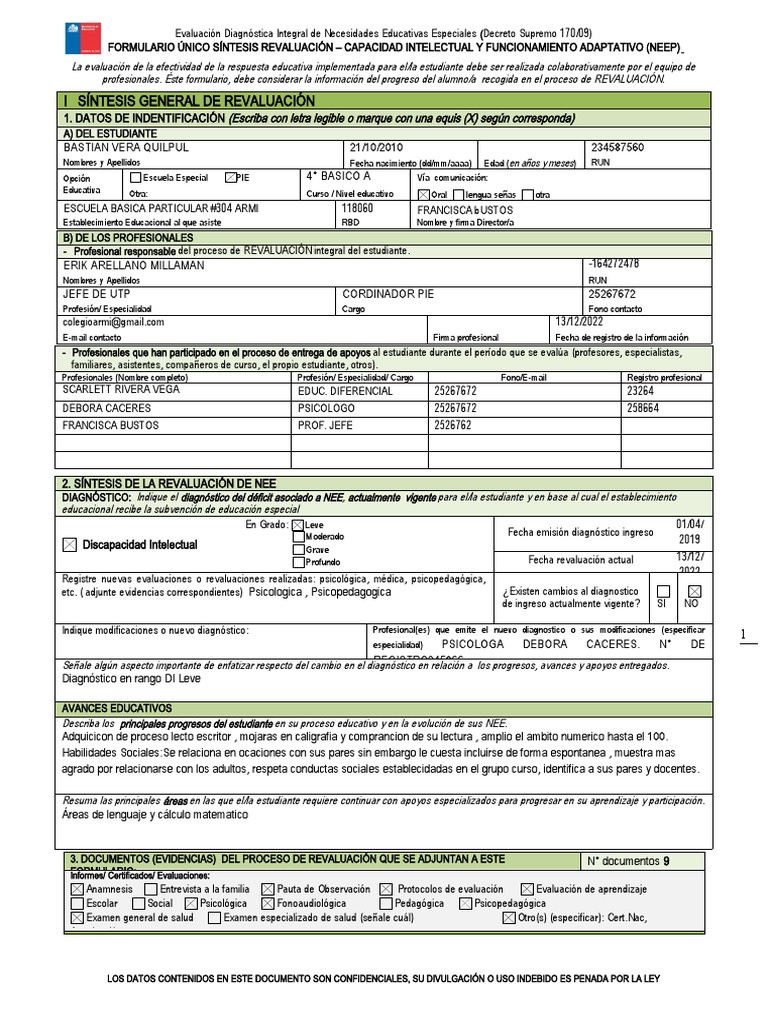 FORMULARIO ÚNICO SÍNTESIS REVALUACIÓN – CAPACIDAD INTELECTUAL Y FUNCIONAMIENTO ADAPTATIVO (NEEP)