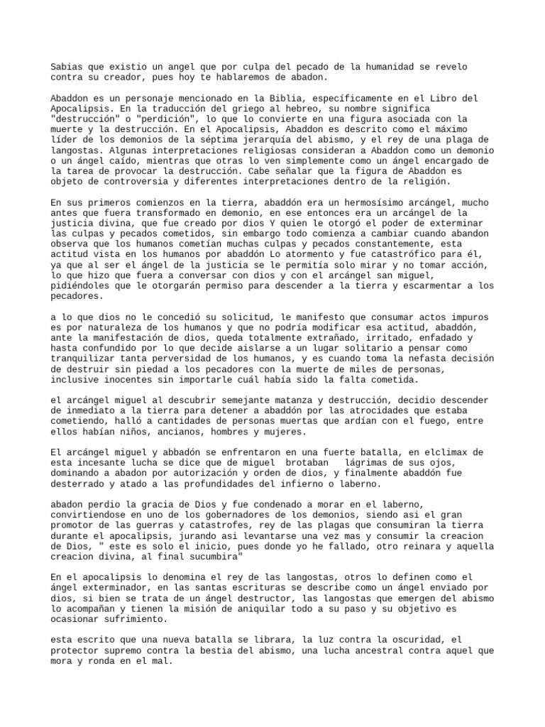 Abaddon es un personaje mencionado en la Biblia, específicamente en el Libro del