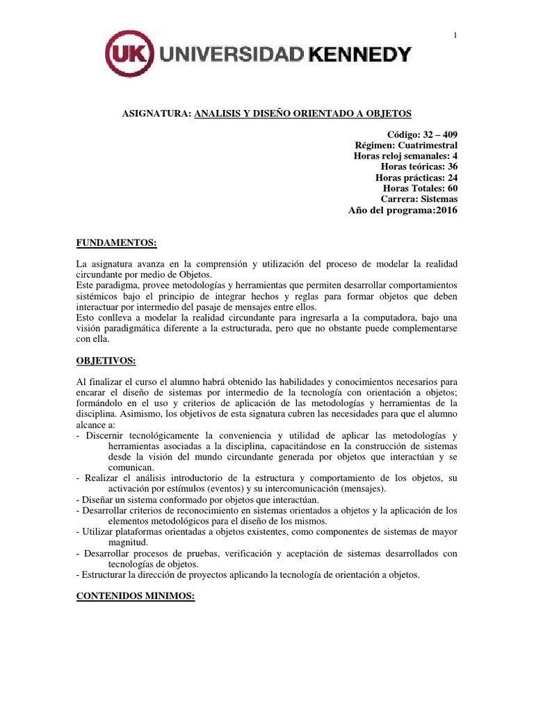 ASIGNATURA: ANALISIS Y DISEÑO ORIENTADO A OBJETOS