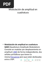 La modulación QAM (Quadrature Amplitude Modulation) es una técnica de modulación digital que combina dos señales portadoras en cuadratura para transmitir datos digitales, permitiendo mayores tasas de transmisión de datos dentro de un ancho de banda dado al utilizar constelaciones con más puntos.