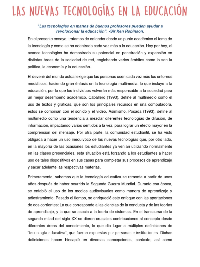 la tecnología y como se ha adentrado cada vez más a la educación. Hoy por hoy, el