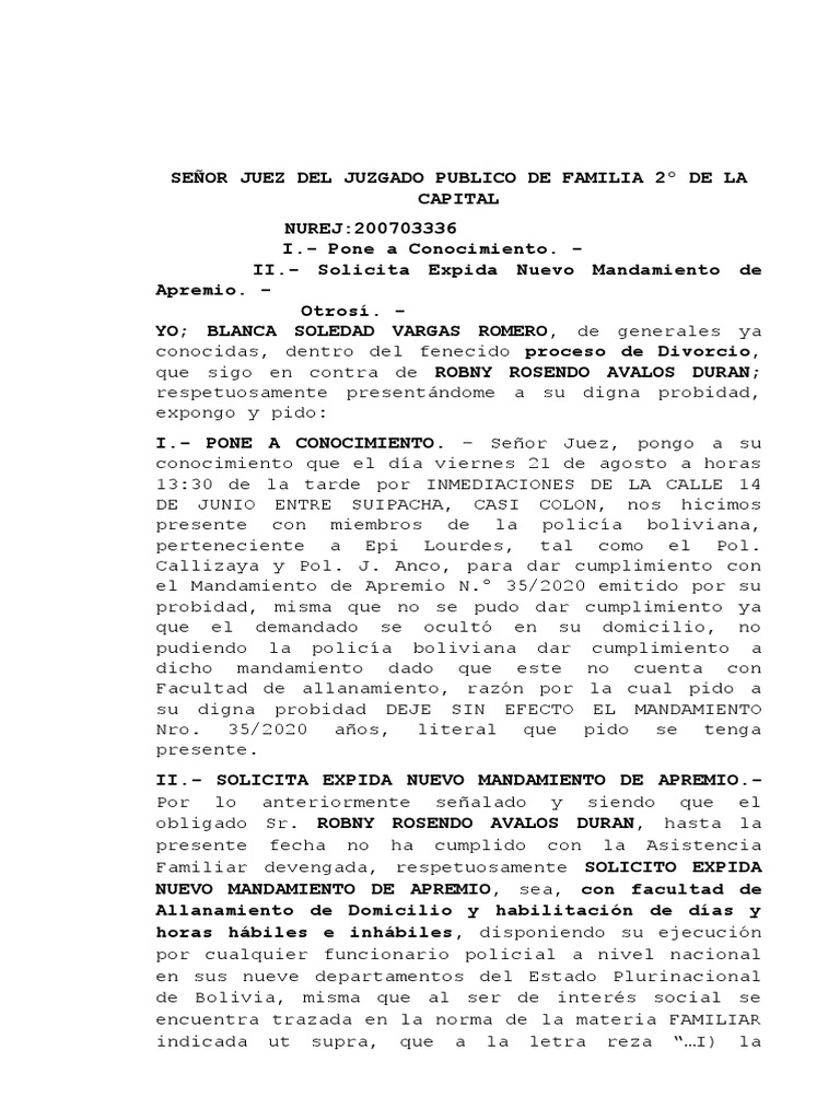 II.- SOLICITA EXPIDA NUEVO MANDAMIENTO DE APREMIO.-