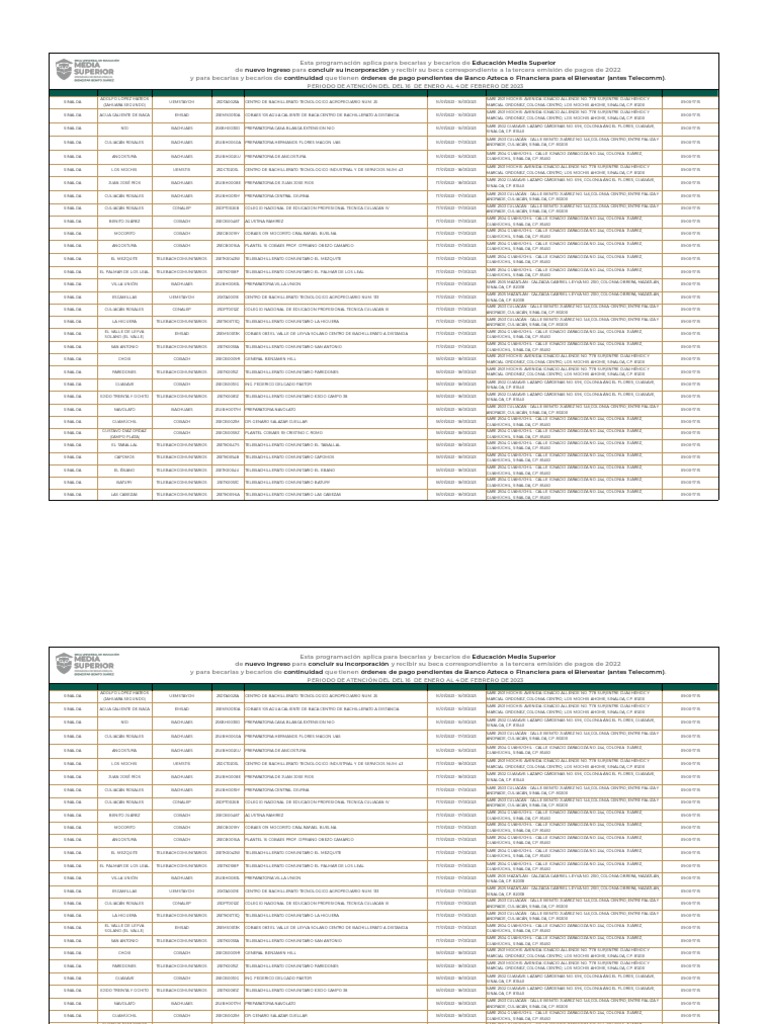 y para becarias y becarios de continuidad que tienen órdenes de pago pendientes de Banco Azteca o Financiera para el Bienestar (antes Telecomm).