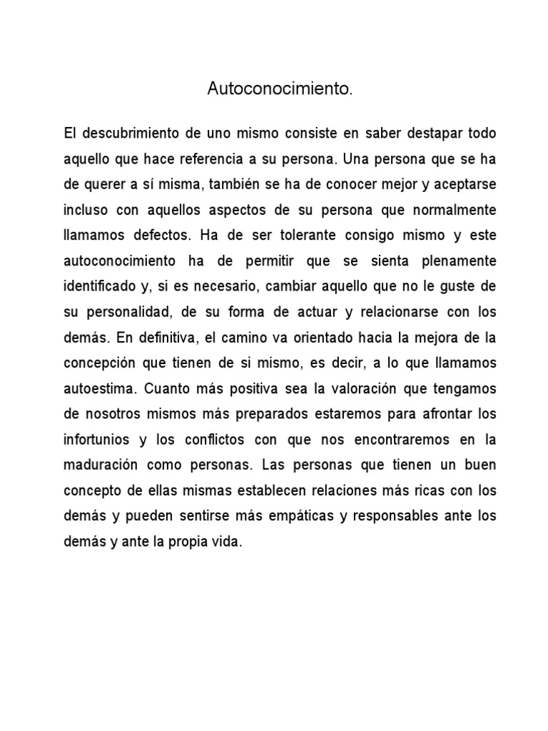 de querer a sí misma, también se ha de conocer mejor y aceptarse