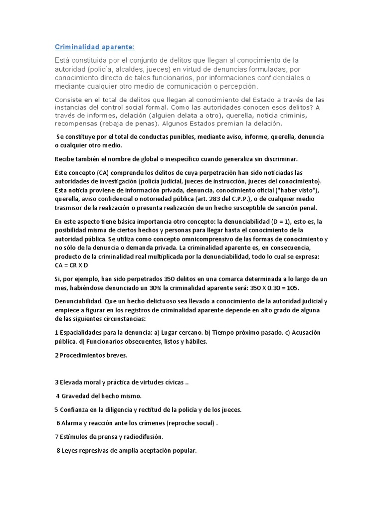 mes, habiéndose denunciado un 30% la criminalidad aparente será: 350 X 0.30 = 105.
