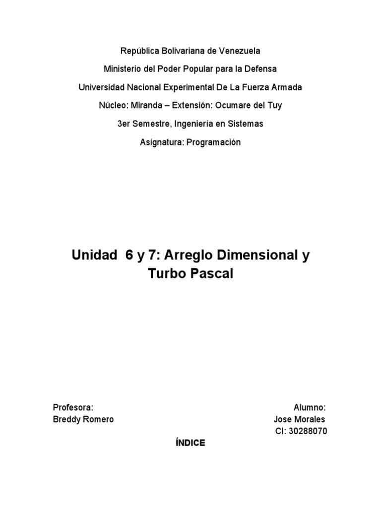cada dimensión. Turbo Pascal es importante porque es el desarrollo