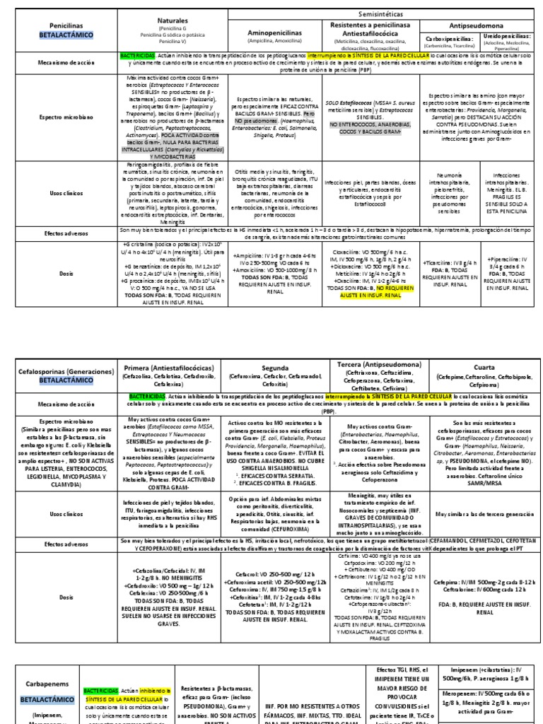 Clasificación y usos de penicilinas y cefalosporinas
