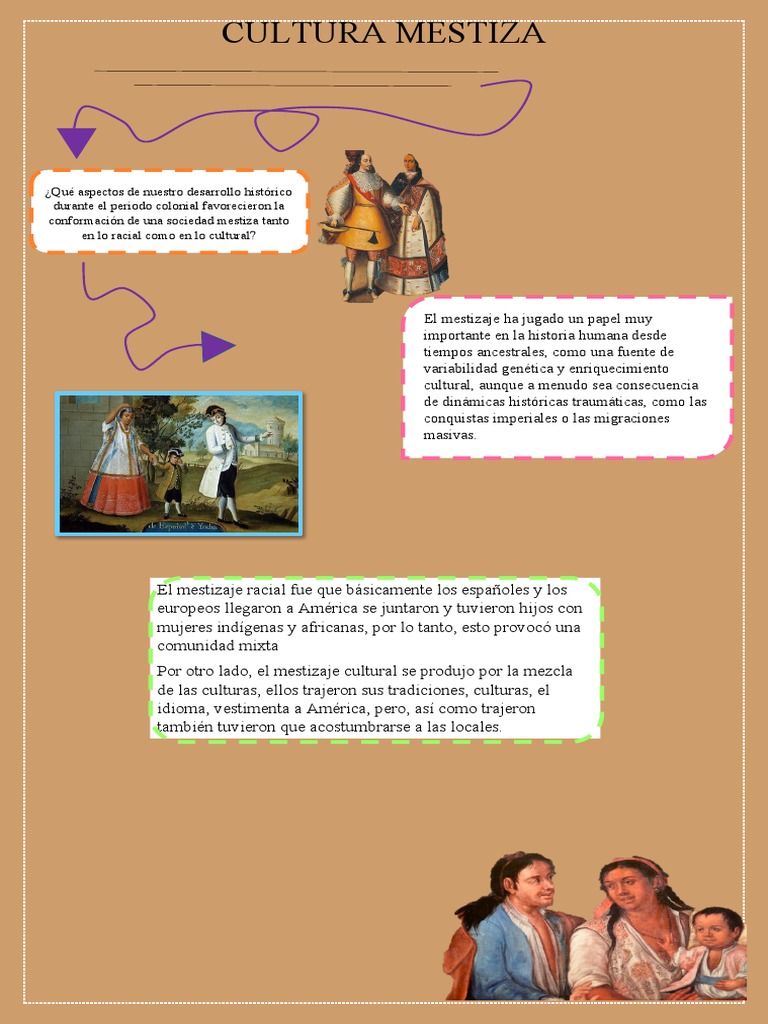Por otro lado, el mestizaje cultural se produjo por la mezcla