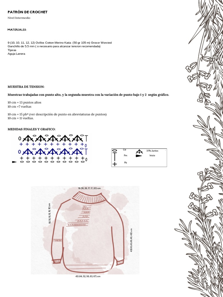 Talla 6: Siguiendo el patrón de repeticiones hacer 27 pb variación 2, terminar con 1 pm. Hacer 1