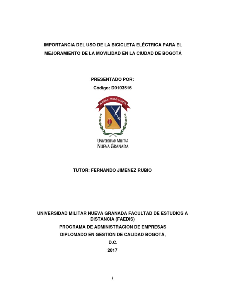 uso de la bicicleta eléctrica en la ciudad de Bogotá, principalmente porque es necesario