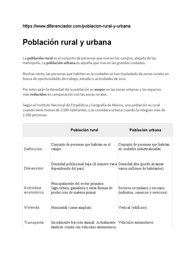 metrópolis. La población urbana es aquella que vive en las grandes ciudades.
