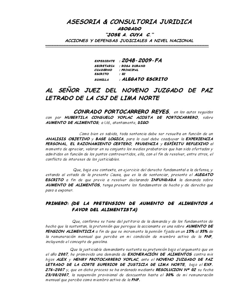 AUMENTO DE ALIMENTOS; a Ud., atentamente, DIGO: