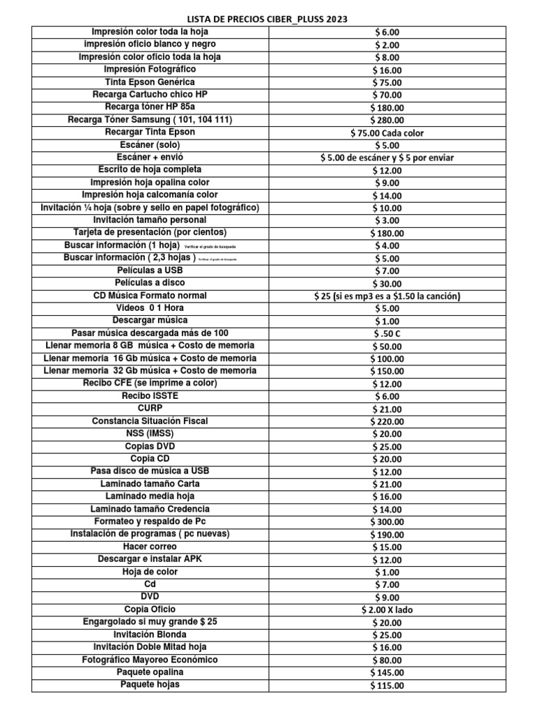 LISTA DE PRECIOS CIBER_PLUSS 2023
