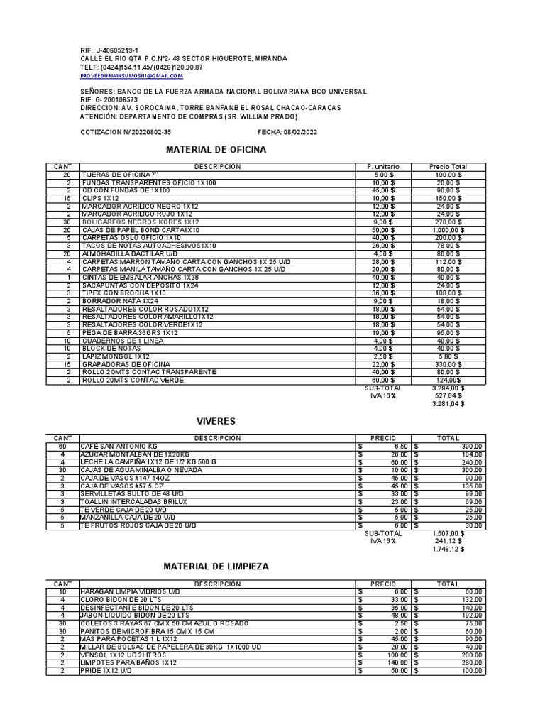COTIZACION N/ 20220802-35 FECHA: 08/02/2022