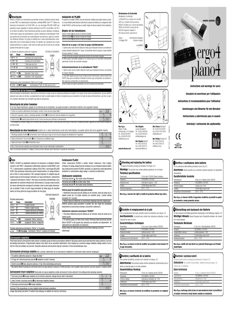 1. Mantenga apretado el botón ■ del transmisor nuevo hasta que se oiga un tono de aviso (después de alrededor de 5 segundos) 5s Tel. +39.0422.85.38.38 Fax +32.(0)16.38.69.01 info@nicefrance.fr
