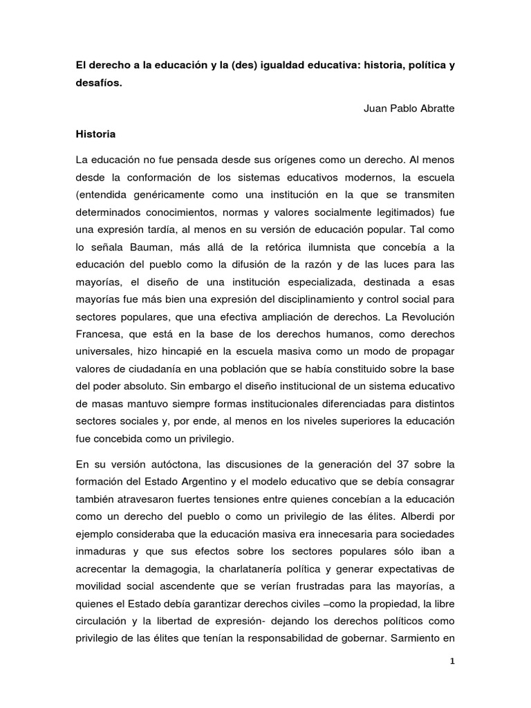 El derecho a la educación y la (des) igualdad educativa: historia, política y