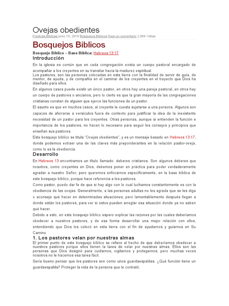 Este bosquejo bíblico se titula “Ovejas obedientes”, y es un mensaje basado en Hebreos 13:17,