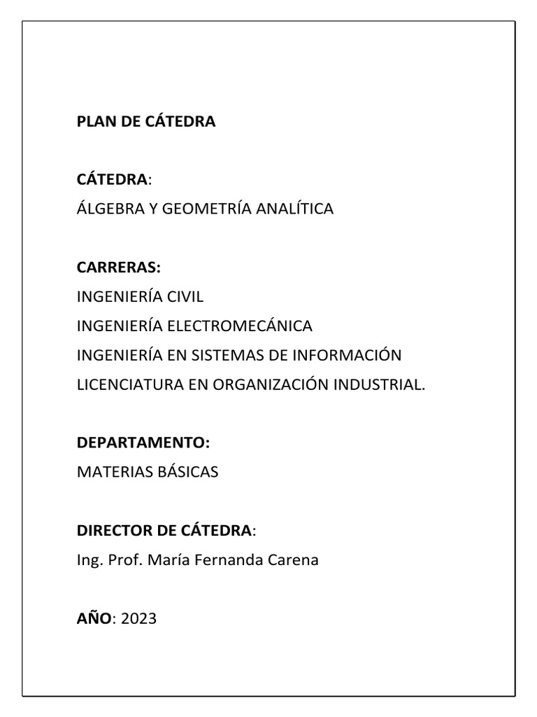 La asignatura álgebra y geometría analítica como se indica en los distintos diseños