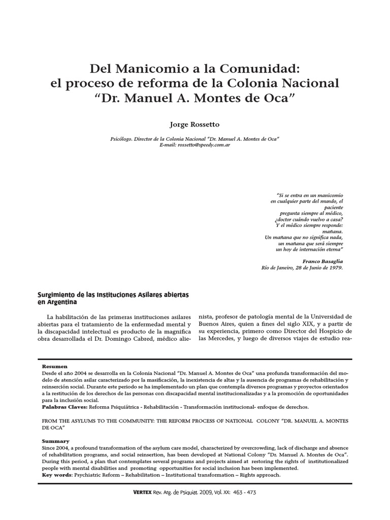 FROM THE ASYLUMS TO THE COMMUNITY: THE REFORM PROCESS OF NATIONAL COLONY “DR. MANUEL A. MONTES
