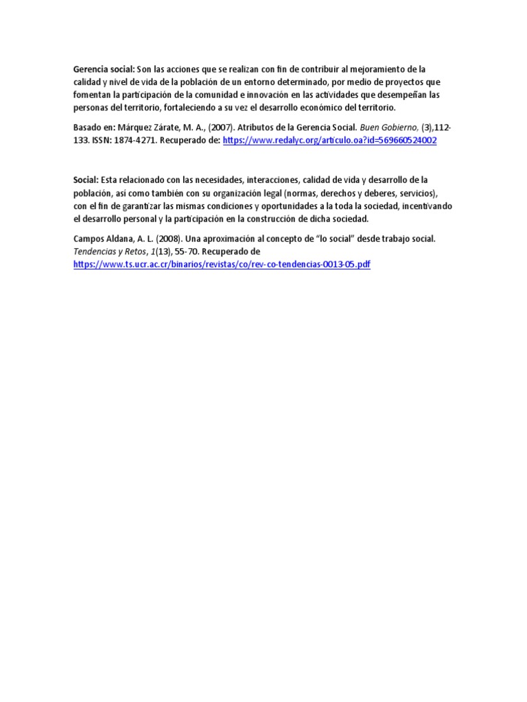 Gerencia social: Son las acciones que se realizan con fin de contribuir al mejoramiento de la