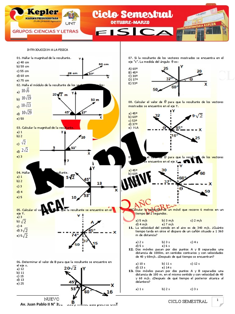 e) 3 09. Calcular el valor de θ para que la resultante de los vectores