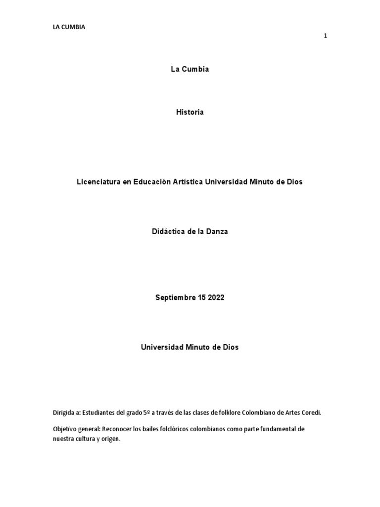Desarrollo: Inicialmente se contará un relato corto sobre los orígenes de La Cumbia, dando paso a