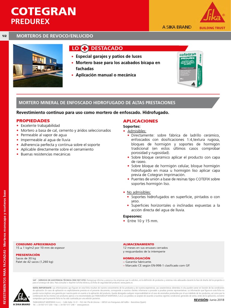 para el arranque de obra. Para consultar e imprimir la ficha técnica y la ficha de seguridad del producto: www.parex.es