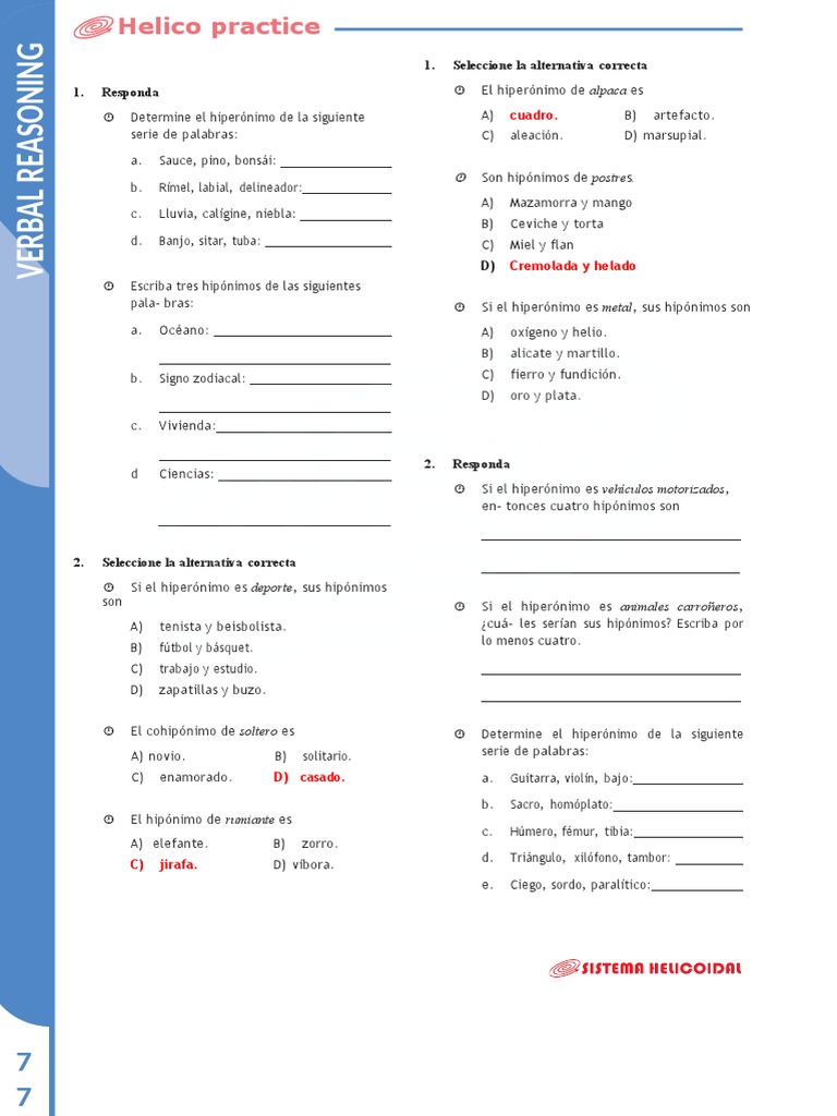 Si los cohipónimos son botas y sandalias, C) Biblia D) Cuaderno