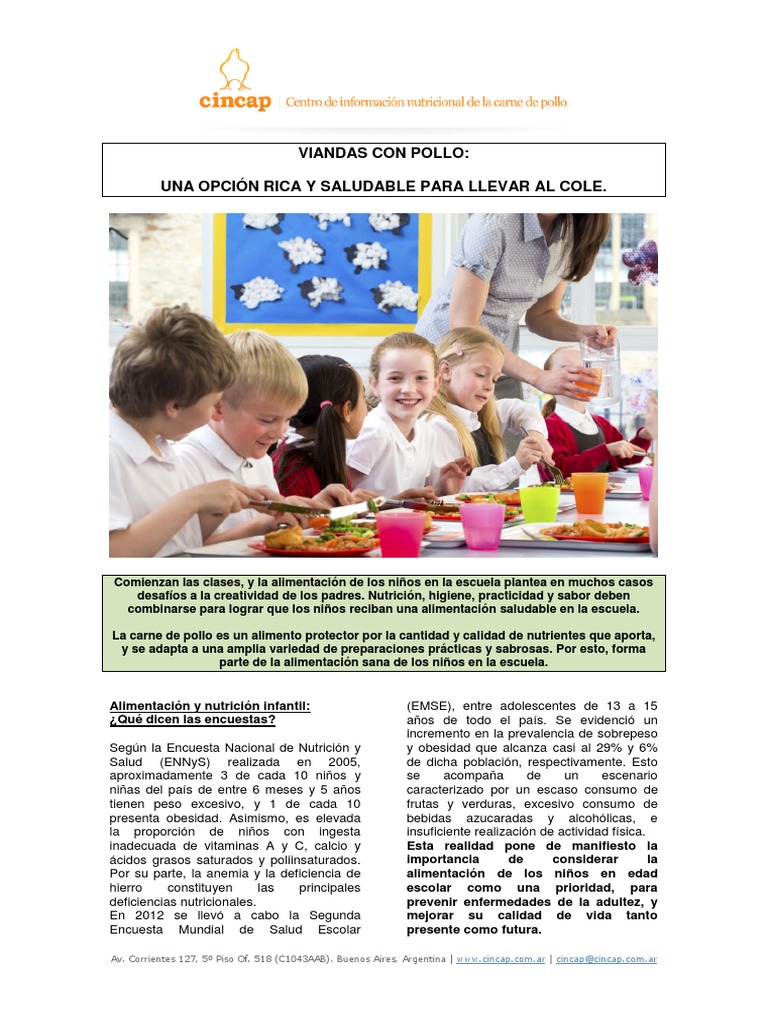 de pollo en niños que van a la escuela. De ninguna manera reemplaza a la consulta con
