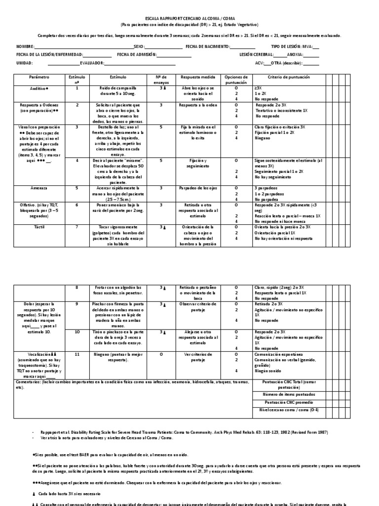 ESCALA RAPPAPORT CERCANO AL COMA / COMA