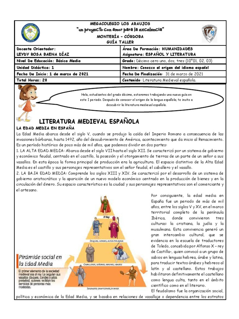LEYDY ROSA BAENA DÍAZ Asignatura: ESPAÑOL Y LITERATURA