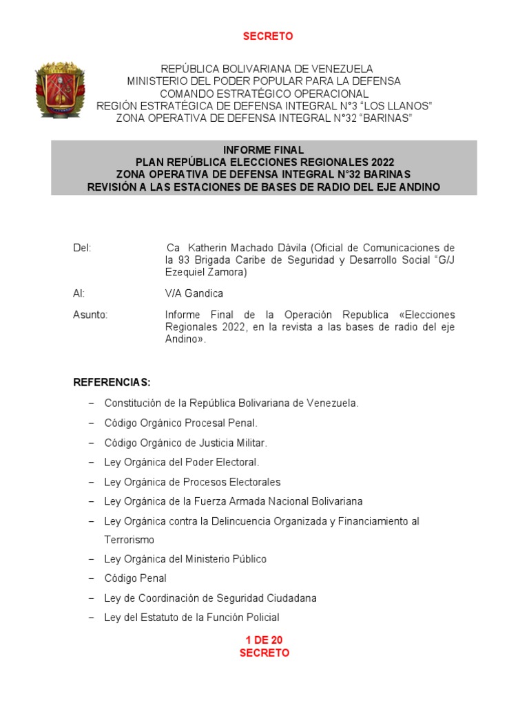Asunto: Informe Final de la Operación Republica «Elecciones