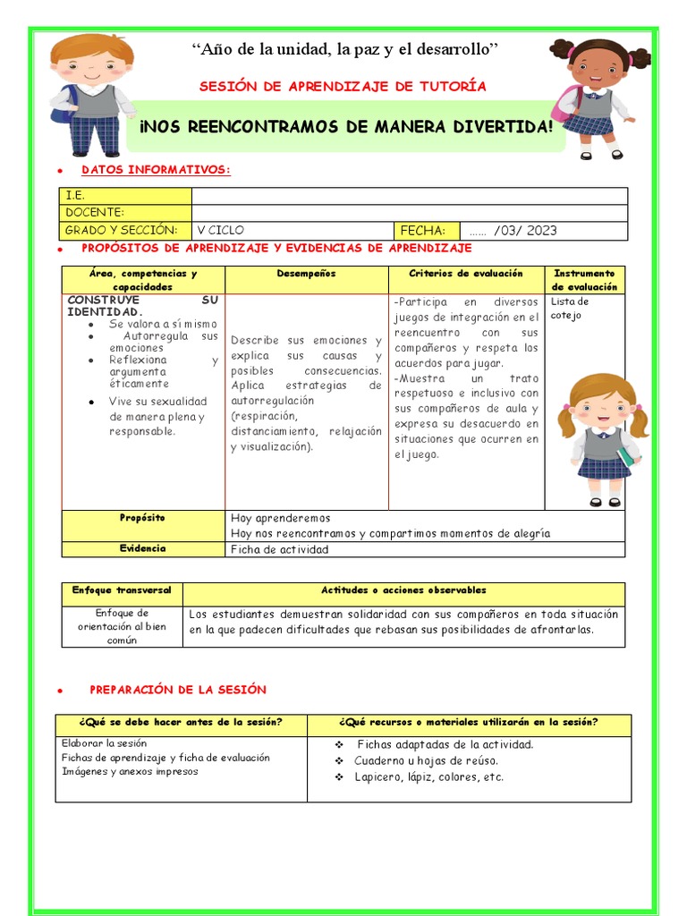 SESIÓN DE APRENDIZAJE DE TUTORÍA