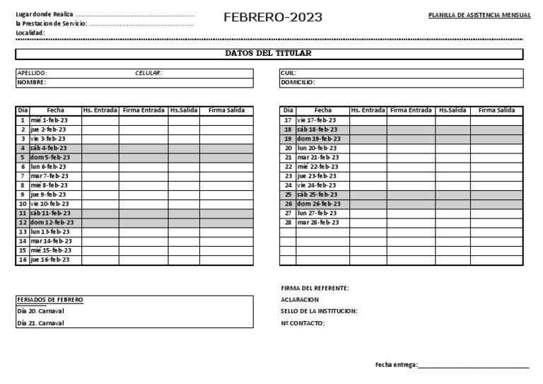 FEBRERO-2023 PLANILLA DE ASISTENCIA MENSUAL