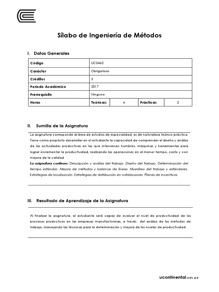 Sílabo de Ingeniería de Métodos