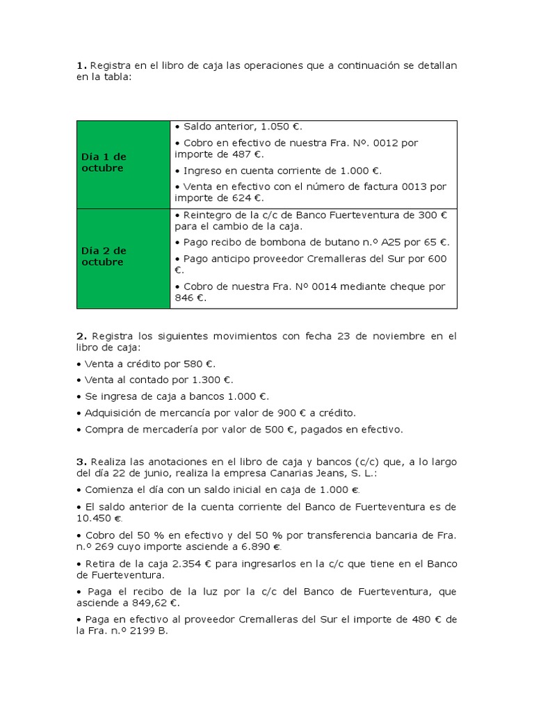 Registra en el libro de caja las operaciones que a continuación se detallan