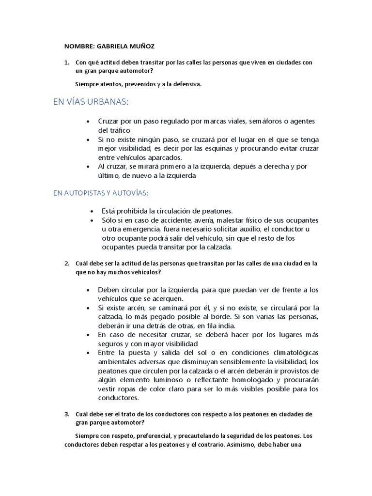 1. Con qué actitud deben transitar por las calles las personas que viven en ciudades con