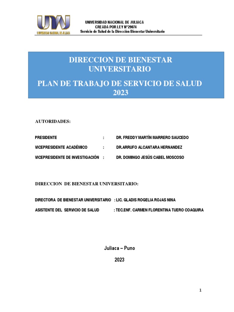 PLAN DE TRABAJO DEL SERVICIO DE SALUD – 2023