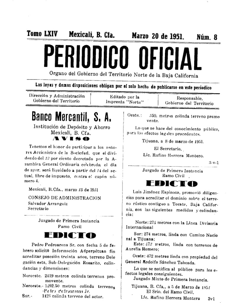 Tomo XIV Mexicali, B. Cfa. Marzo 20 de 1951. Nam. 8